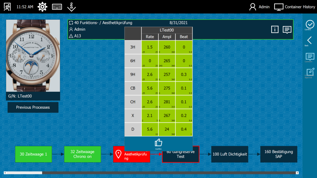 With SCIIL quality assurance and traceability software for watch production, tests were digitized, causes recorded and all data assigned to a serial number. This creates end-to-end transparency – from the individual component to the finished watch.
